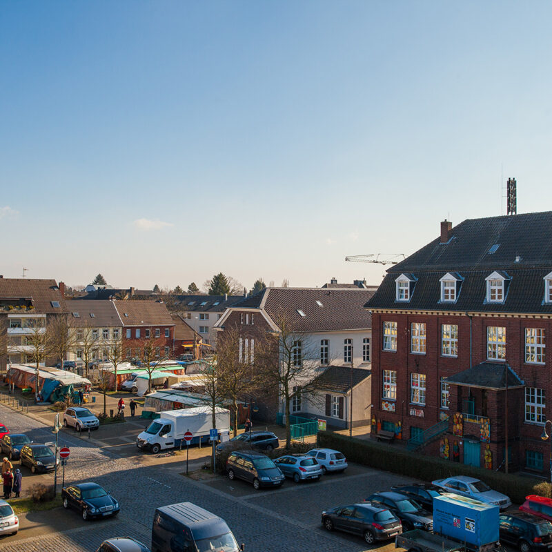 Im Herzen Fischelns am historischen Marienplatz planen wir die Realisierung eines modernen Wohnbauprojekts, das sich durch hohe Bauqualität, durchdachte Grundrisse und seine zentrale Lage auszeichnet. Das neu entstehende Eckhaus wird die dörfliche Struktur des beliebten Stadtteils Krefelds prägen. Die Architektur mit Steildach orientiert sich am 2020 revitalisierten Schutzbunker, der am gegenüberliegende Ende des Marktplatzes liegt.